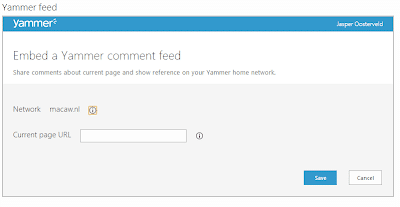I have to select a Yammer network and an Group ID. The pop-up gives you a description how to obtain the ID. Got the ID? The feed appears:
