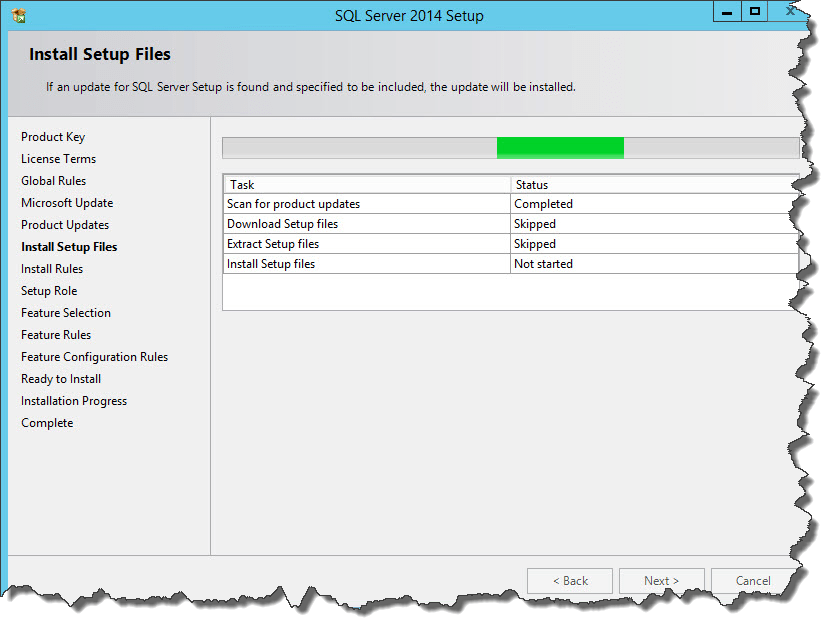 9. On the “Install Setup Files” Screen, you can review the installation progress for downloaded product updates.