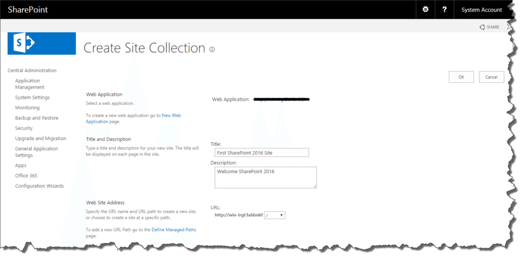 In my previous blog, we have just completed configuration of Microsoft SharePoint 2016 successfully. Now, we are ready to configure our first Site Collection in the SharePoint 2016 environment.